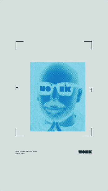 The name VOSK translates to “Wax” from Russian — a common term for a vinyl record. I wanted the logo to reflect the label’s dedication to the physical medium. A 12” record forms the O and the negative space within the V and S shapes reveal a turntable cartridge needle under magnification.